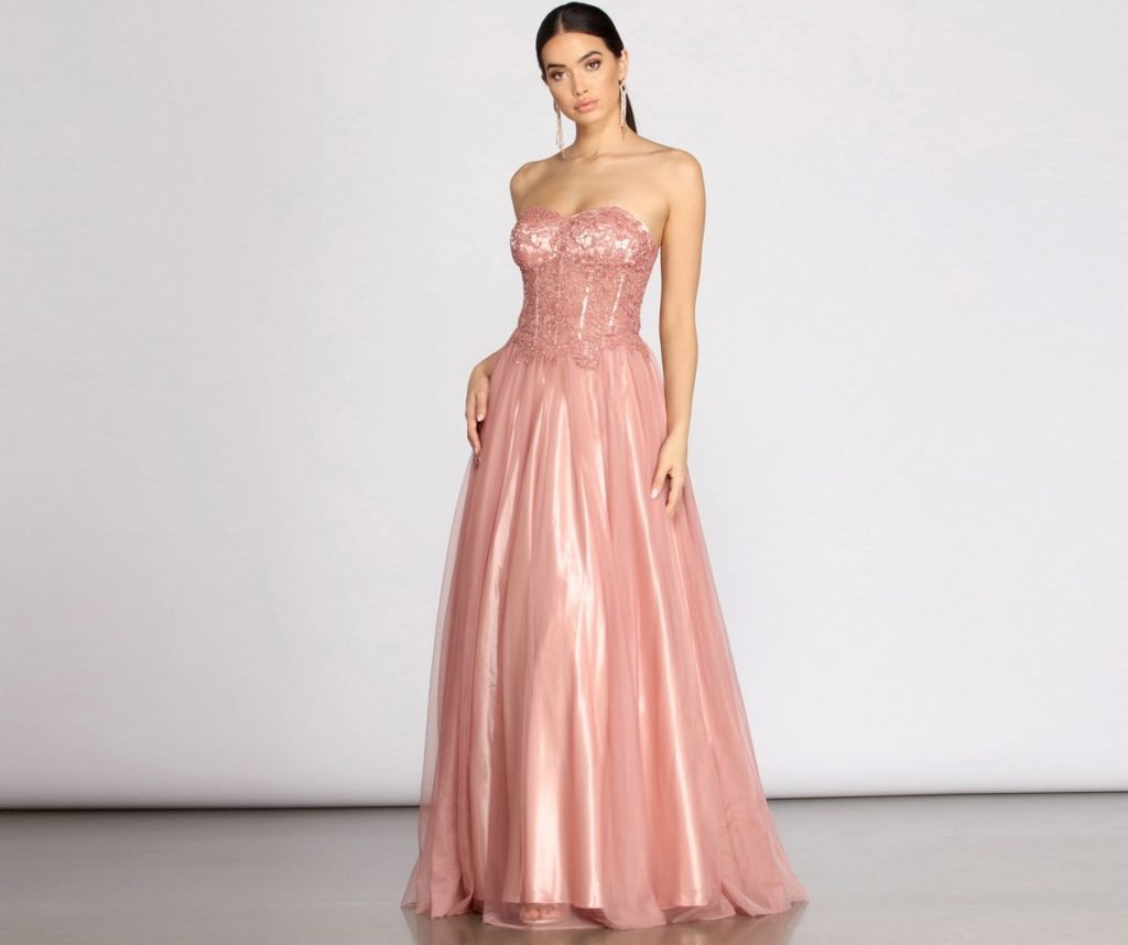 You can never go wrong with a Strapless A- line dress, and this one does not disappoint! It’s just beautiful.