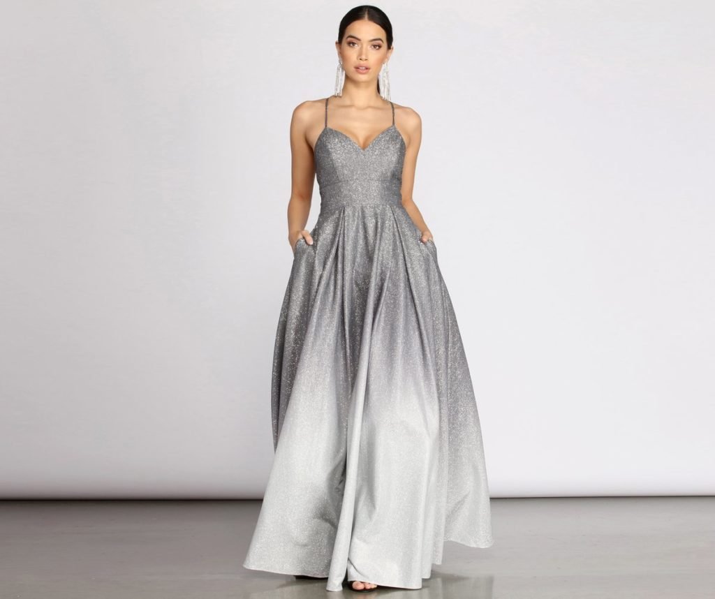 Ombre always brings a great spark of character to a gown, especially in this silver glittery pattern!